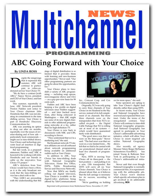 Article reprint for Your Choice TV, from Multichannel News Magazine. In the course of this project the magazine masthead had to be recreated.