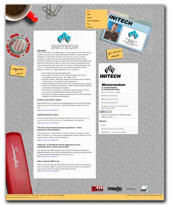 Mix ’06 conference in Las Vegas, NV sponsored a contest where designers where challenged to style a provided HTML page how ever they wanted. Entries could not modify the HTML, but little to no limit on how they wanted to use CSS and images to produce their final results. My entry was based upon the popular movie, Office Space, which is a favorite of many an office worker.