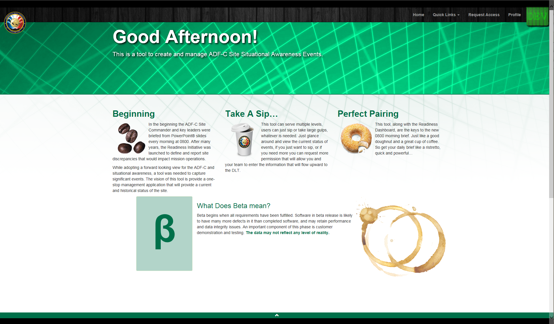 This tool along with the Readiness Dashboard, are the keys to the new 0800 morning brief. Just like a good doughnut and a great cup of coffee. So get your daily brief like a ristretto, quick and powerful…