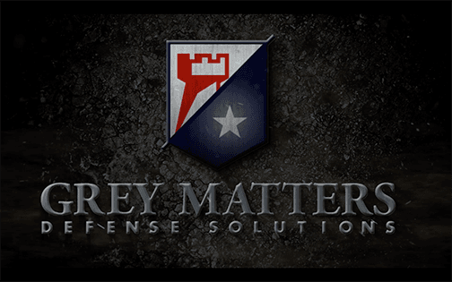 Intro logo animation for Grey Matters Defense Solutions, for use across multiple promotional videos/animations.