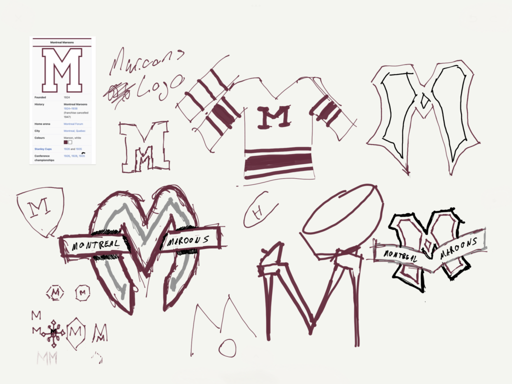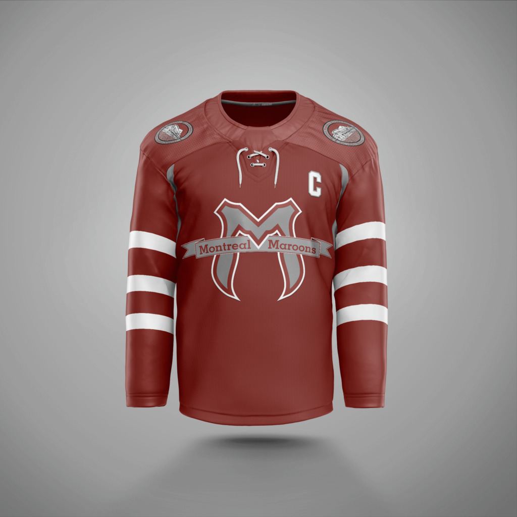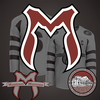 From 1924 till 1938 there was a NHL franchise known as the Montreal Maroons. The mascot/nickname came from the press covering the team at the time and the name stuck. I’ve created logos, and jersey designs trying to honor the great hockey traditions of Canada, Montreal, and the NHL.
