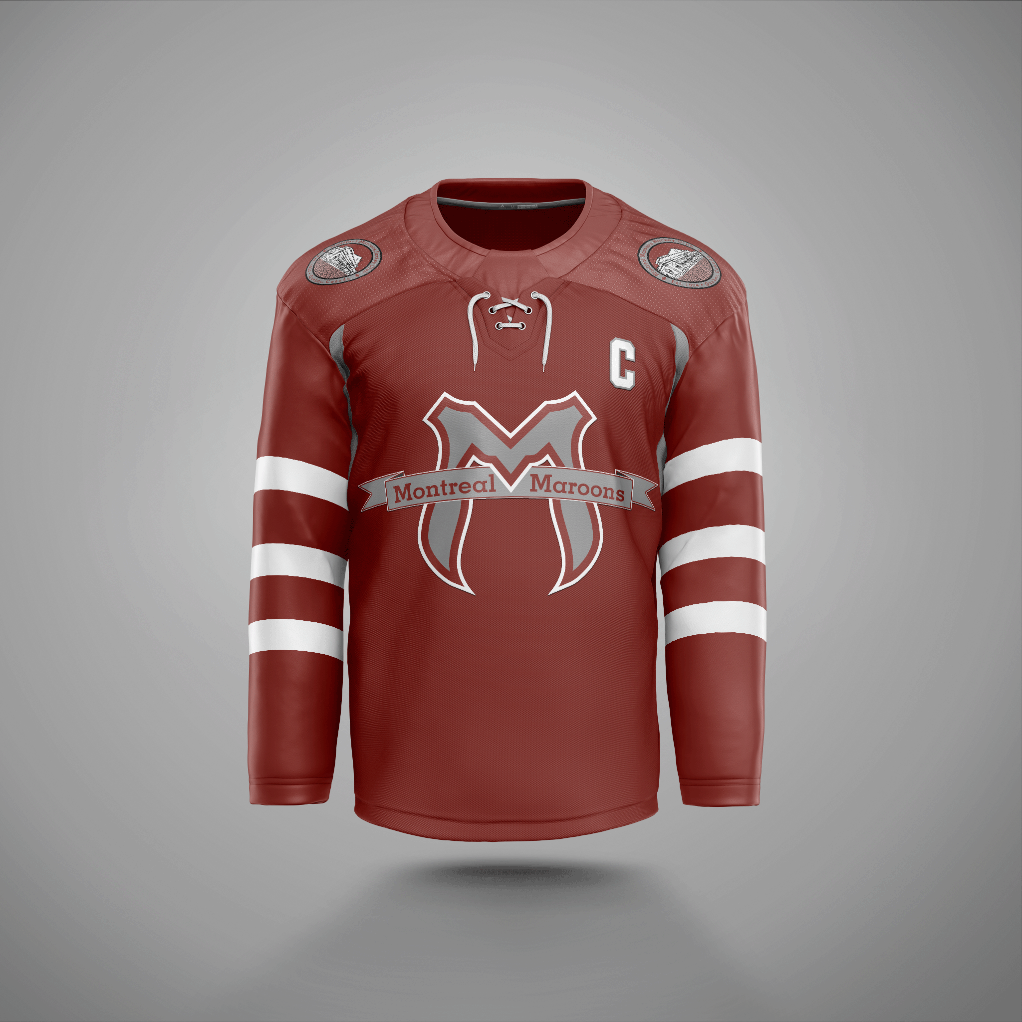 From 1924 till 1938 there was a NHL franchise known as the Montreal Maroons. The mascot/nickname came from the press covering the team at the time and the name stuck. I’ve created logos, and jersey designs trying to honor the great hockey traditions of Canada, Montreal, and the NHL.