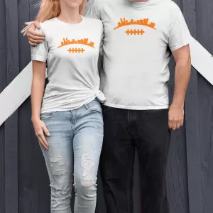 Ultimately, the beauty of this t-shirt design lies in its ability to convey a meaningful connection between the city and its sporting heritage. It’s a testament to the symbiotic relationship between urban culture and athletic passion, captured within the artful lines of the Denver city skyline forming the iconic shape of a football. This design not only celebrates the city’s architecture and sports, but also invites those who wear it to proudly display their love for Denver and its vibrant identity.