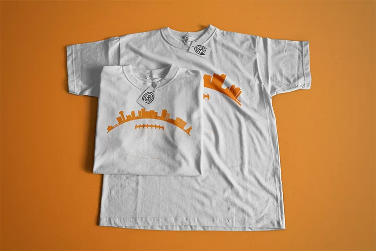The concept for this t-shirt design is a brilliant fusion of two iconic elements: the Denver a city skyline and the classic shape of a football. By creatively incorporating these elements into a single design, you’ll be able to see a visually striking and meaningful graphic that captures the essence of the city’s sports culture and its urban landscape.