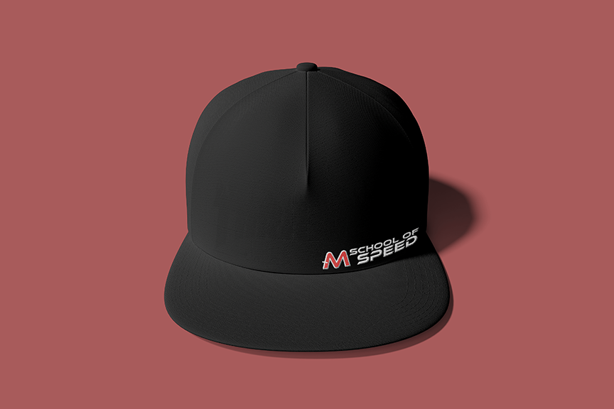 One of the most unique elements of this brand identity is the M logo. Designed to resemble an overhead view of a race track, it creates an immediate visual connection to motorsports. The bold black line represents the start/finish line, reinforcing the core competitive nature of the program. The dynamic, slanted angles of the letter evoke motion and acceleration, ensuring that even at a standstill, the logo feels like it’s in action.