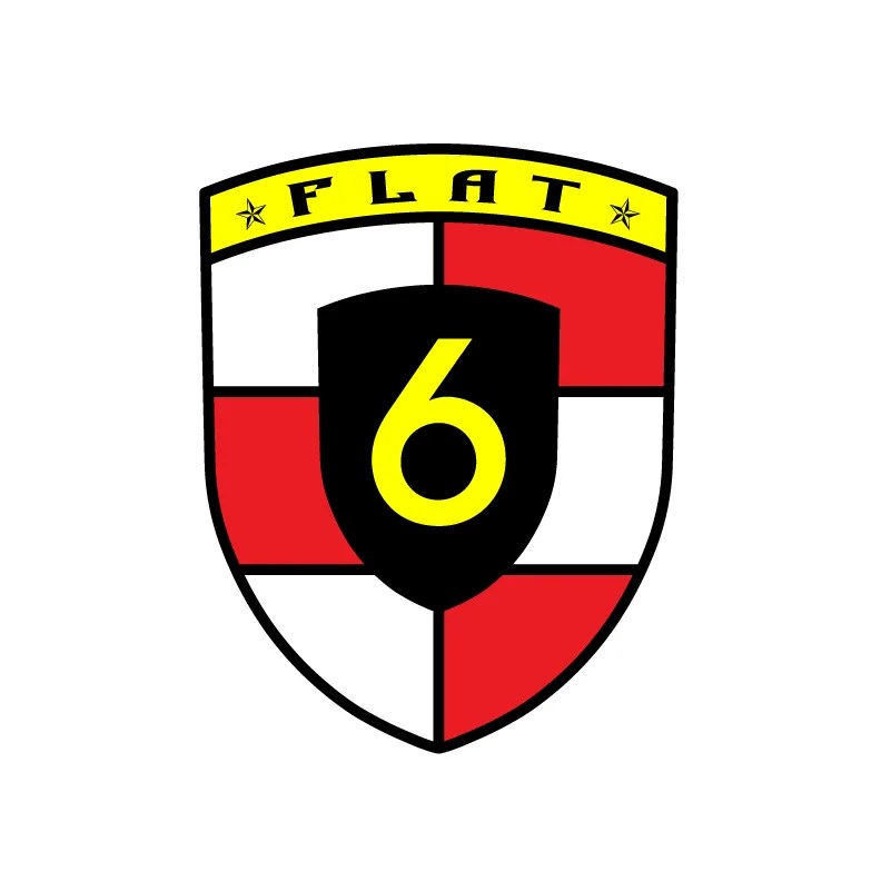 The logo features stylized pistons arranged to reflect the horizontally opposed nature of the flat-six configuration, with three cylinders on each side of a central axis. This layout references the engine’s inherent balance and low center of gravity, qualities that have defined the flat-six lineage over decades.